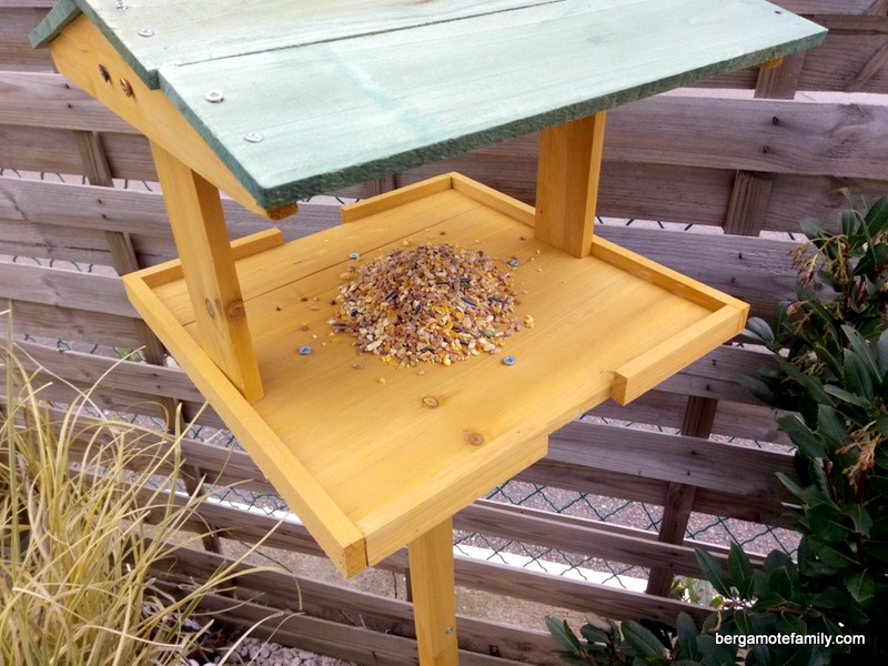 Les enfants adorant observer les animaux, on a pris soin d’accueillir également les oiseaux du quartier : merles, tourterelles, corbeaux, pies, rouges-gorges, mésanges et autres moineaux. Nous avions déjà construit des mangeoires et installé un nichoir où nous avions pu avoir une porté de mésanges. Cette année nous avons ajouté une nouvelle mangeoire sur pied, en forme de cabane, abritée. Et là encore, je ne suis pas déçue car toute la journée, ils arrivent parfois par dizaine !