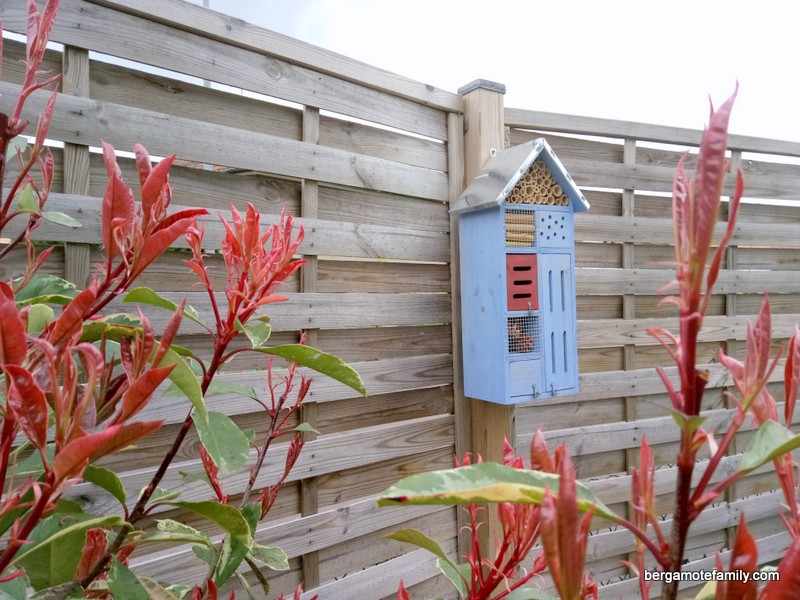 Pour les insectes, j’ai changé mon ancien par un nouveau hôtel à insectes, plus grand et plus solide. On espère pouvoir y voir différentes espèces, mais pour le moment, c’est un peu tôt encore.