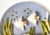 - Dans l’assiette, disposer les bouquets de brocolis en les coupant en 2. Vous pouvez en mettre sur deux étages si besoin.