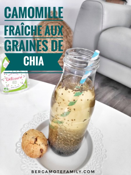 J’avais promis de vous partager mes recettes de boissons dans lesquelles j’ajoute des graines de chia. Voici la première recette qui est à base de camomille. Pour cela, j’utilise un sachet de tisane tout simplement que je fais infuser et dans lequel je vais aussi ajouter des graines de chia et quelques fruits. C’est là encore une recette de boisson très facile à réaliser en quelques minutes et qui pourra être consommée à tout moment de la journée.