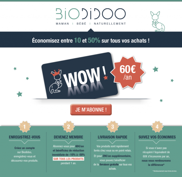 En ce moment, j’utilise celles d’une boutique en ligne, BIODIDOO, qui a toute une gamme de produits sains pour la famille. Il y a un abonnement à l’année (60€) qui vous permet de bénéficier de jusqu’à -50% toute l’année sur les produits de la boutique. D’ailleurs, pour tout abonnement, avec le code BERGAMOTE vous aurez droit à un -10€ sur l’abonnement WOW, donc 50€.