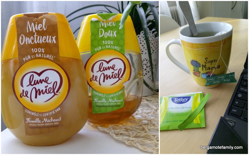 - du miel Lune de Miel, très pratique dans son flacon qui permet de verser le miel sans que ça colle partout (avec des enfants, c’est top !). Ma fille étant fan de miel, elle a adoré en manger au petit déjeuner, qui a une grosse préférence pour le miel doux.