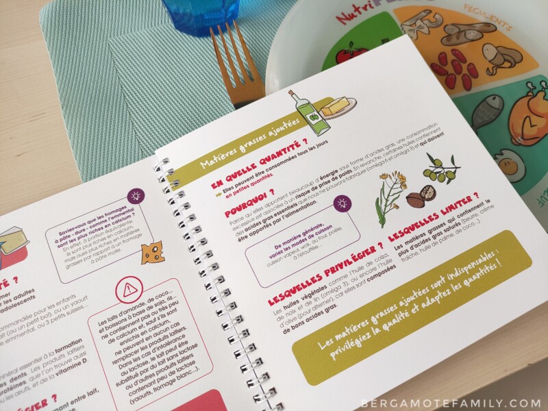 - un livret : il est composé d’ateliers à mettre en place en famille comme un défi pour varier les menus ou celui de faire manger des légumes secs aux enfants. Le but étant à chaque fois de répondre à une problématique « mon enfant dit qu’il mange toujours les mêmes plats » ou « mon enfant ne veut manger que des pâtes et des pommes de terre ». On y trouve également des recettes de saison en images, des informations sur les différents groupes d’aliments…