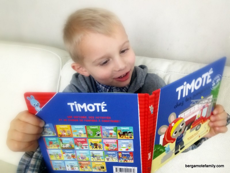 Ce ne sont pas les premiers livres du petit héros Timoté que nous lisons, nous en avons déjà 4. J’aime bien ces livres car en plus de l’histoire où l’enfant peu participer, il y a un jeu détachable à la fin du livre (ou une construction !), des questions… L’enfant participe et devient acteur.