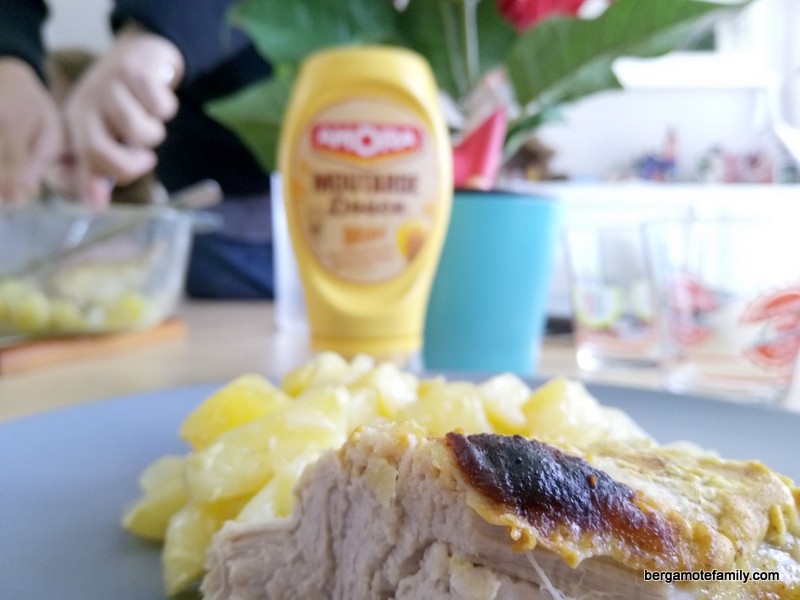 Comme j’aime les recettes simples, rapides, non-techniques !! Le filet mignon, c’est top pour cela, et en plus le résultat est toujours parfait ! Associé à la moutarde au miel Amora que j’ai eu dans la Degustabox de décembre, c’est encore plus simple, car je n’ai pas à préparer moi-même le badigeonnage de la viande ! Je rajoute juste un peu de gingembre en poudre et le tour est joué.