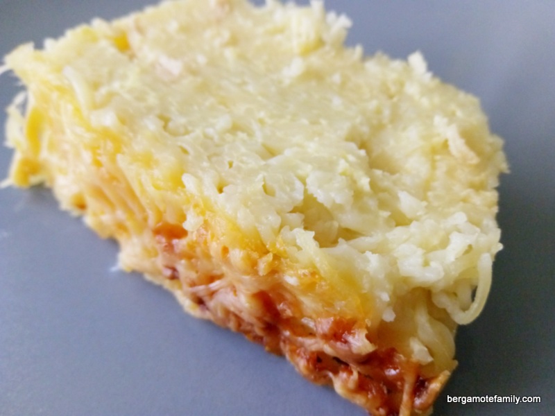 Si ça ce n’est pas une recette kidfriendly, alors c’est une recette régressive ! Hop, tout le monde retourne en enfance et mange un gâteau de spaghettis ! Et puis, cela peut être également écologique, s’il vous reste des pâtes (oui, moi aussi parfois je cuis un paquet entier alors qu’on est que 3…), vous allez pouvoir les réutiliser dans une recette un peu fun !