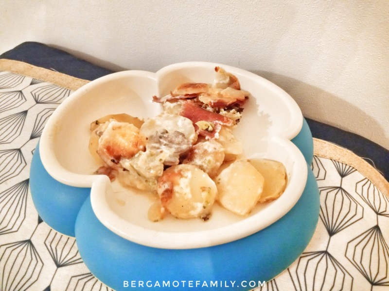 On est bien loin d’un plat très diététique à cause de ses cuillères de crème qui le compose, mais ce gratin a le grand avantage d’avoir été apprécié de tous mes enfants (ok, pas de celui qui a soigneusement trié les champignons avant de les glisser dans mon assiette). Cela reste un plat fait-maison, avec des ingrédients simples : on sait ce que l’on mange !