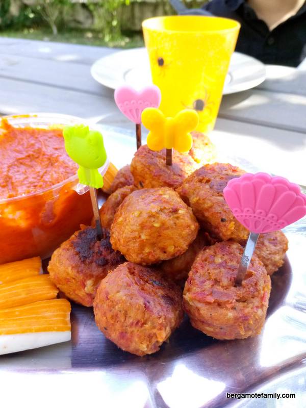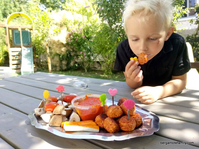 Nous avons commencé la dégustation par les boulettes au piment d’espelette. J’avais un peu peur que cela ne plaise pas à mes enfants qui répètent souvent « ça pique !! » mais non, tout est justement bien dosé pour être accepté par les petits et plus grands enfants (et adultes !). Les saveurs sont audacieuses et harmonieuses. J’ai, pour l’instant, apprécié les plats tout autant que mes enfants.