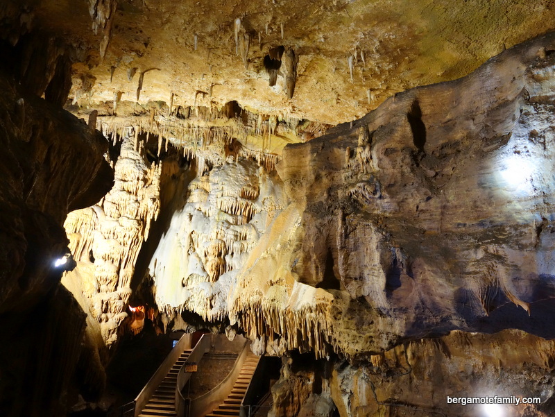 Nous avons également visiter la grotte de Presque. Bien plus petite que Padirac, mais néanmoins très jolie. Elle concentre toutes les différentes sortes de stalactites, stalagmites, couleurs et formes… et surtout un guide donne de nombreuses explications concrètes sur la formation de la grotte, son exploration, etc.