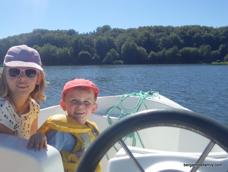 Avec la chaleur de la semaine, nous avions très envie de nous baigner. Notre maison de vacances était située juste à côté du Lac du Tolerme qui comporte une plage aménagée et surveillée. Malheureusement, impossible de s’y baigner pendant notre semaine, le cyanobactéries s’étant concentrées dans le lac… Mais heureusement, le lieu dispose de grands toboggans plongeants dans une piscine : rafraîchissement garantis ! Ma fille a adoré (pas moi, j’ai pas osé y aller !). On aura aussi fait des château de sable, de la balançoire… et tout le tour du lac à pied (5km !) et en bateau !