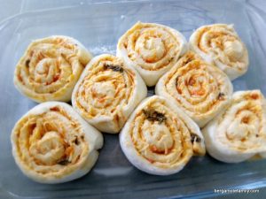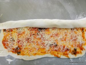 C’est tout simplement une pâte à pizza que l’on garni selon nos envies et que l’on roule puis coupe en tranche avant d’enfourner ! Un peu comme le gâteau brioché le Chinois.