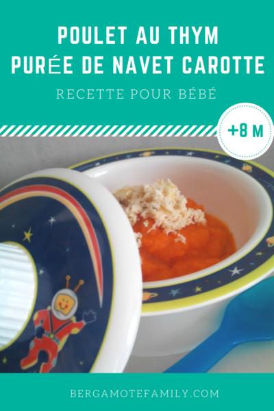 Du poulet bien parfumé et une purée toute douce, un vrai régal ! Un super plat pour bébé de saison : en avril, les navets sont toujours d’actualités et les carottes refont leur apparition (bien qu’en magasin,on en voit tout l’année !).