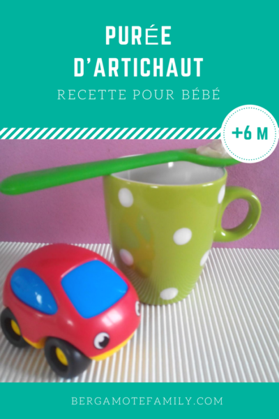 Malgré le fait que dans le commerce on peut trouver des petits pots industriels de purée d’artichaut dès 4-6 mois, j’ai plutôt tendance à ne le présenter qu’après 6-8 mois (d’ailleurs la première fois, c’était aux 8 mois de Pépin Bergamote chez nous!), car c’est un légume qui n’est pas si facile à digérer que cela !