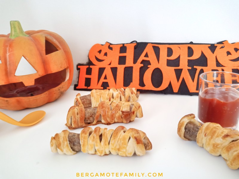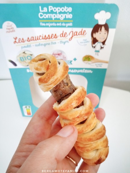 Les momies d’Halloween sont un grand classique. Mais cette année, j’ai voulu les réaliser avec « les saucisses de Jade », qui sont à base de poulet, d’aubergine et d’un peu de thym. C’est la Popote Compagnie qui les commercialise et elles ont le très grand avantage d’avoir un Nutriscore de A, donc bonne pour la santé de nos enfants. Car faire des recettes ludiques, c’est bien, mais si en plus on choisit des ingrédients de qualité c’est mieux !