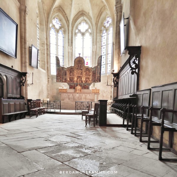 Nous avons choisi de faire la visite guidée de l’abbaye. Bien plus intéressant que si nous avions fait une simple visite. Le guide était sympathique (merci d’avoir fait participer les enfants !) et nous plongeait bien dans la vie d’avant à l’abbaye et de sa construction au fil des siècles. Les différentes cours, l’église, la chapelle aux tombeaux, le musée : comptez une heure environ.