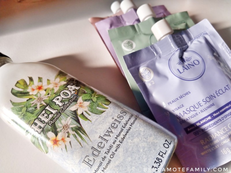 Que dire du Monoï Hei Poa ? Un délice ! L’odeur est à tomber. Cette version collector Edeweiss est sublime. Comme il est à base d’huile de coco, je dois le réchauffer entre mes mains pour le rendre fluide. Ensuite, je l’utilise en massage pour un bonne hydratation, mais aussi pour mes cheveux et ceux de ma fille, sur les pointes. Jusque là, j’en utilisais surtout l’été pour les cheveux, mais l’hiver c’est top aussi (et l’odeur me ramène au soleil !).